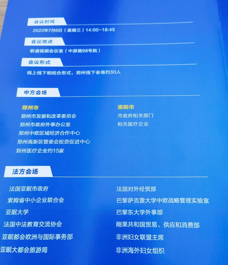 7月4日,中法《第二屆ACESF大健康科學(xué)家論壇》視頻會議開幕式舉行。鄭州市何雄市長在鄭州市會場致辭,亞眠大都會區(qū)主席阿蘭·蓋斯特以視頻連線形式致辭。河南路通國際經(jīng)貿(mào)集團(tuán)公司衛(wèi)總被邀參加并做主旨演講。
